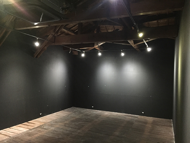 - 真っ黒い壁に囲まれた空間で、展示をすればギャラリーに、椅子を並べれば上映会場に、と使い方は自由自在。