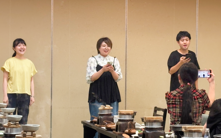 夜は旅館の宴会場で、宴会を行いました。ダンスや合唱をしてくれた社員もおり、宴会は更に盛り上がりました。旅館の宴会をやりたいという大盛の夢を実現することができたので悔いはありません。